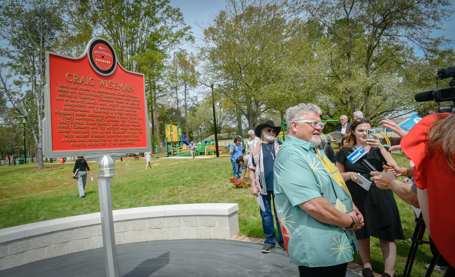 Located at Midtown Green Park in Hattiesburg, this marker honors GRAMMY Award-winning songwriter Craig Wiseman, one of country music’s most prolific hitmakers and a proud Hattiesburg native. Known for penning songs recorded by artists like Tim McGraw, Faith Hill, Blake Shelton, and Morgan Wallen, Wiseman’s influence spans generations of country music fans. The marker, featuring his Big Loud logo, stands near the Midtown Green Bandshell—an arts venue made possible by Wiseman’s personal investment in his hometown. This site celebrates both his legendary career and enduring connection to the Hattiesburg community.