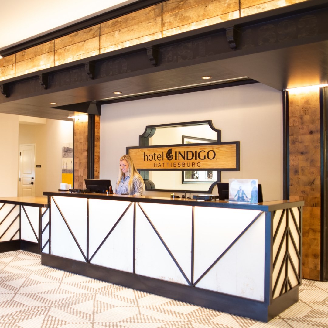 Southern traditions and contemporary customs come together at the Hotel Indigo® Hattiesburg to create an energetic vibe that can be only found in Hub City. The hotel's industrial chic design gives a nod to the city's timber and railroad heritage, with light fixtures inspired by train tunnel lighting and upholstery details reminiscent of historic conductor uniforms. Steel bracing and yellow pine details tell the story of Hub City's past while modern décor touches and creative local collaborations point toward the city's future. We've partnered with local business, like local roaster GRIN Coffee who keeps our lobby buzzing 24/7.