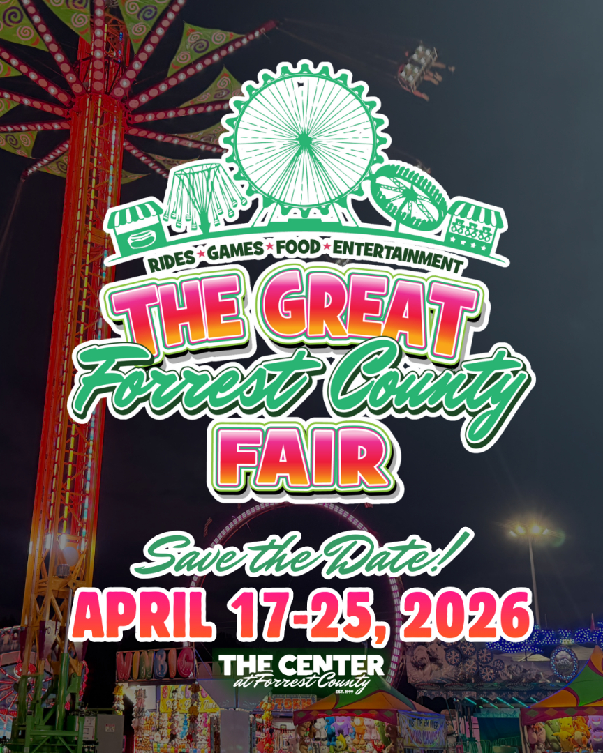 The 2nd Annual Great Forrest County Fair is back and bigger than ever at The Center at Forrest County (962 Sullivan Drive) in Hattiesburg! APRIL 17-25!