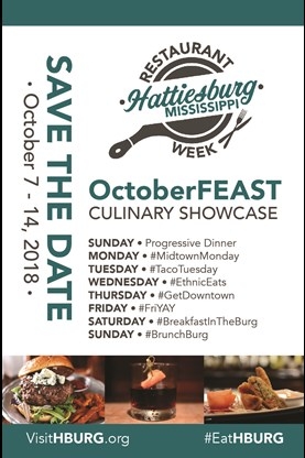 Visithattiesburg Announces “octoberfeast,” City’s First Restaurant Week, Oct. 7 – 14